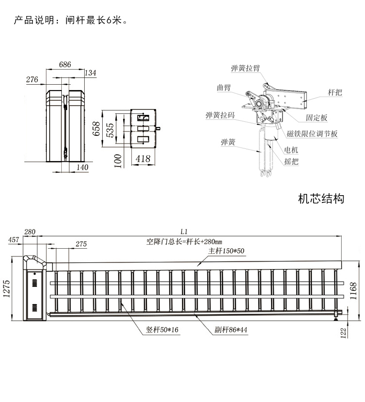 • 閘桿離低高度:1168mm