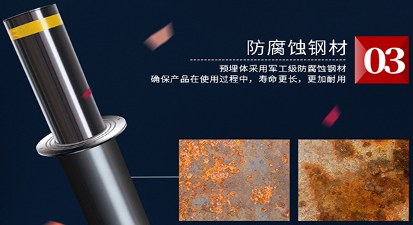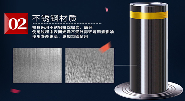 升降路樁樁體材質(zhì)采用超厚304不銹鋼,具有很強抗撞擊能力。