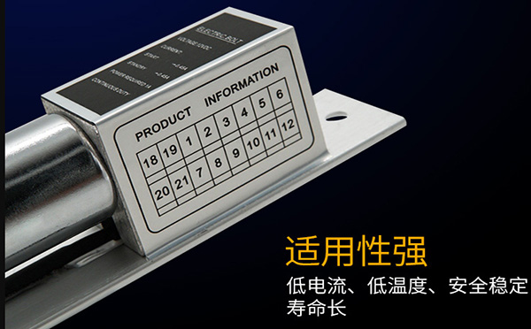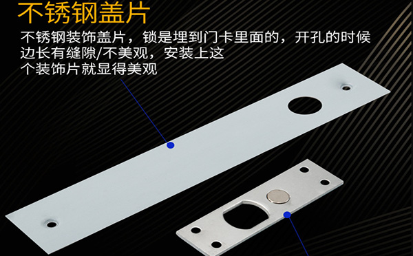 電插鎖采用鋁合金面板,面板經過氧化處理,用面板遮擋結合縫隙,外觀更顯美觀。